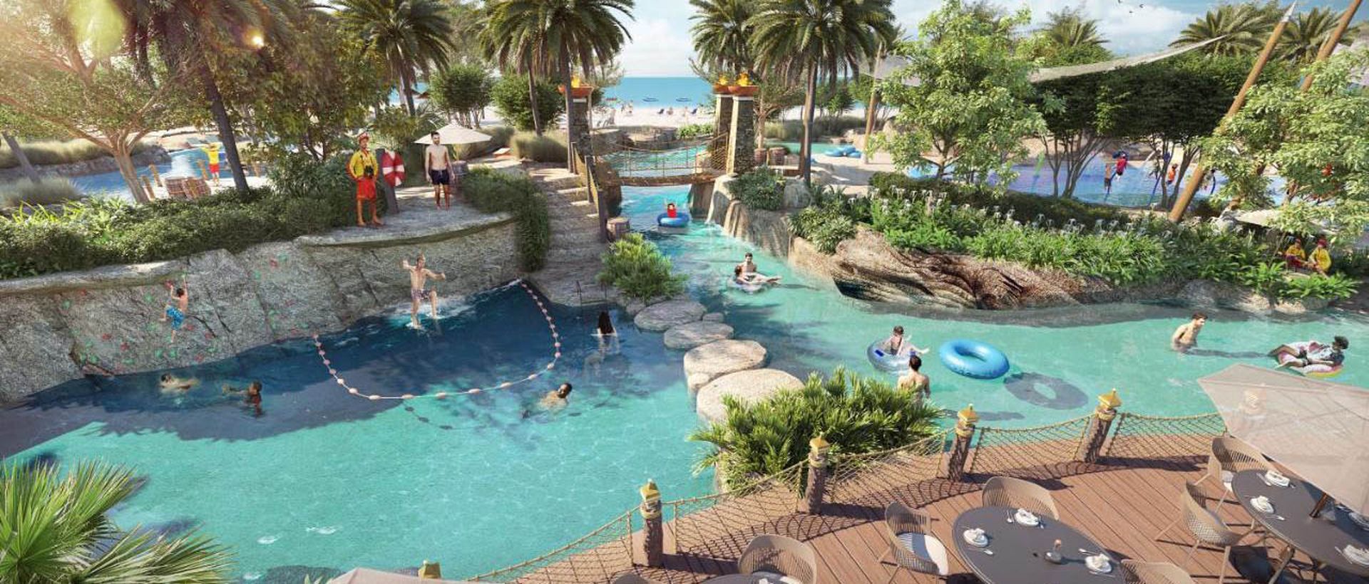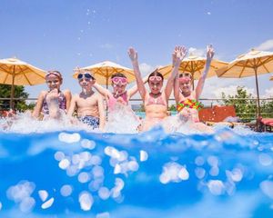 Аквапарк (открытый бассейн, водные горки, "ленивая река", "прыжки с обрыва", игровая площадка на воде)